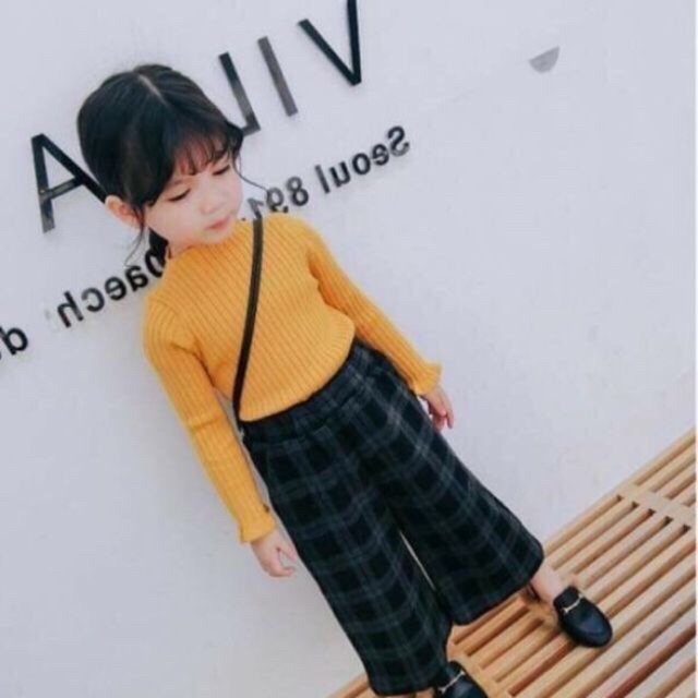 Áo len tăm cổ 3 phân cho bé gái gồm các màu : ghi - đen - đỏ - hồng - rêu size cho bé 8-18kg