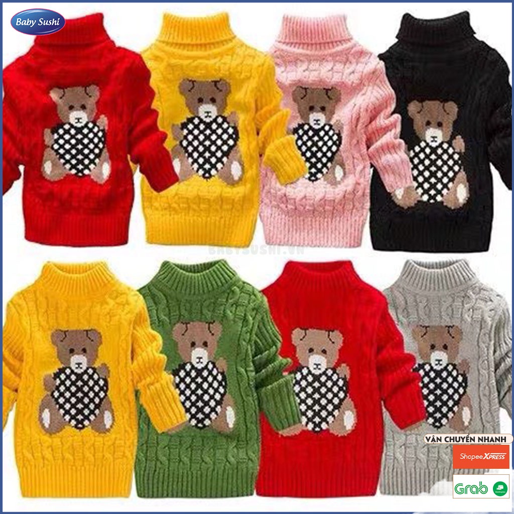 Áo len cổ lọ bé trai bé gái *** Mùa đông đến rồi các mẹ không thể bảo qua áo len để giữ ấm cho các bé nhà mình Babysushi về thêm các mẫu áo len có hình gấu xinh xắn dễ thương