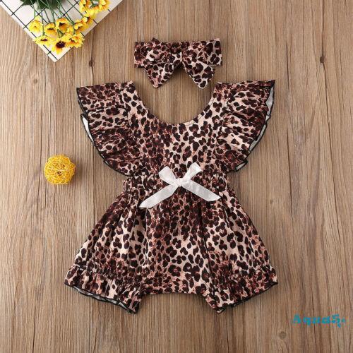 Áo liền quần + Băng đô họa tiết da báo đáng yêu cho bé gái