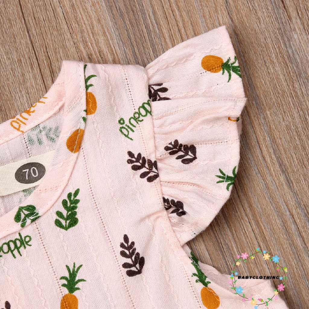 Giới thiệu Áo liền quần ngắn in hình quả dứa tay cánh tiên cho bé gái