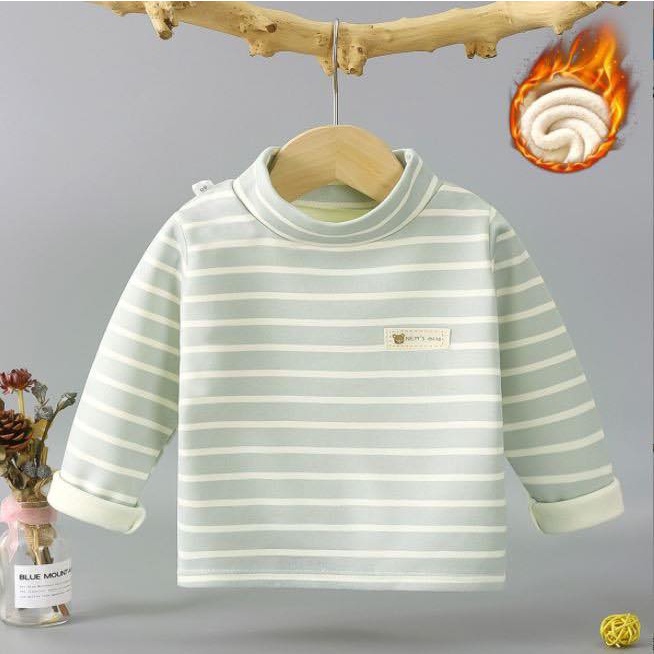 Thời trang trẻ em & trẻ sơ sinh > Quần áo trẻ em > Áo || Áo lót nỉ sọc kẻ cổ cao hàng thu đông