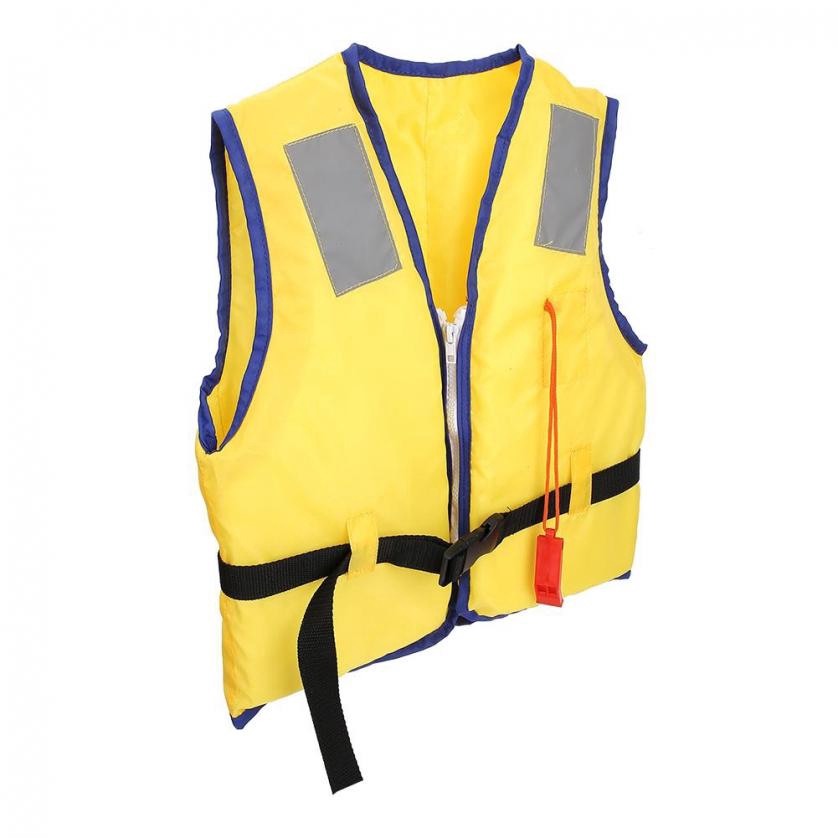 Features: 1.Made of high quality oxford cloth material, good buoyancy, tear resistant, hard wearing and durable. 2.With reflective strip on the both shoulder and a whistle on the chest, can make you stand out at night, enables you to have a higher possibility of being rescued. 3.Wide bands can fix the vest on you body firmly, not easily falling off while wearing. 4.Front zipper design, easy to put on and take off. 5.Great training tool for children to use, help them to learn swimming.