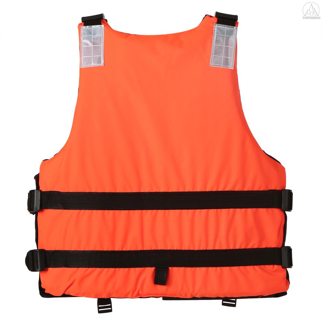This life jacket is made with scratch-resistant polyester fabric and lightweight floation foam for long-time durability. It Features two zipped pockets and two open pocket to offer enough storage space for your items. Three buckles design, adjustable straps, and open sides make the jacket stay securely and comfortably on you. High-visibility reflective panels and the attached whistle can help enhance safety when you are doing water sports like kayaking, fishing, sailing, water skiing, and more.
