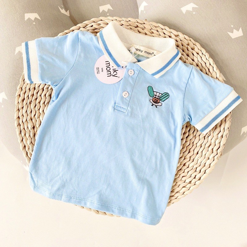Áo Phông Cộc Tay Cổ Trụ Hàng Minky Mom Thêu Họa Tiết Động Vật Cho Bé