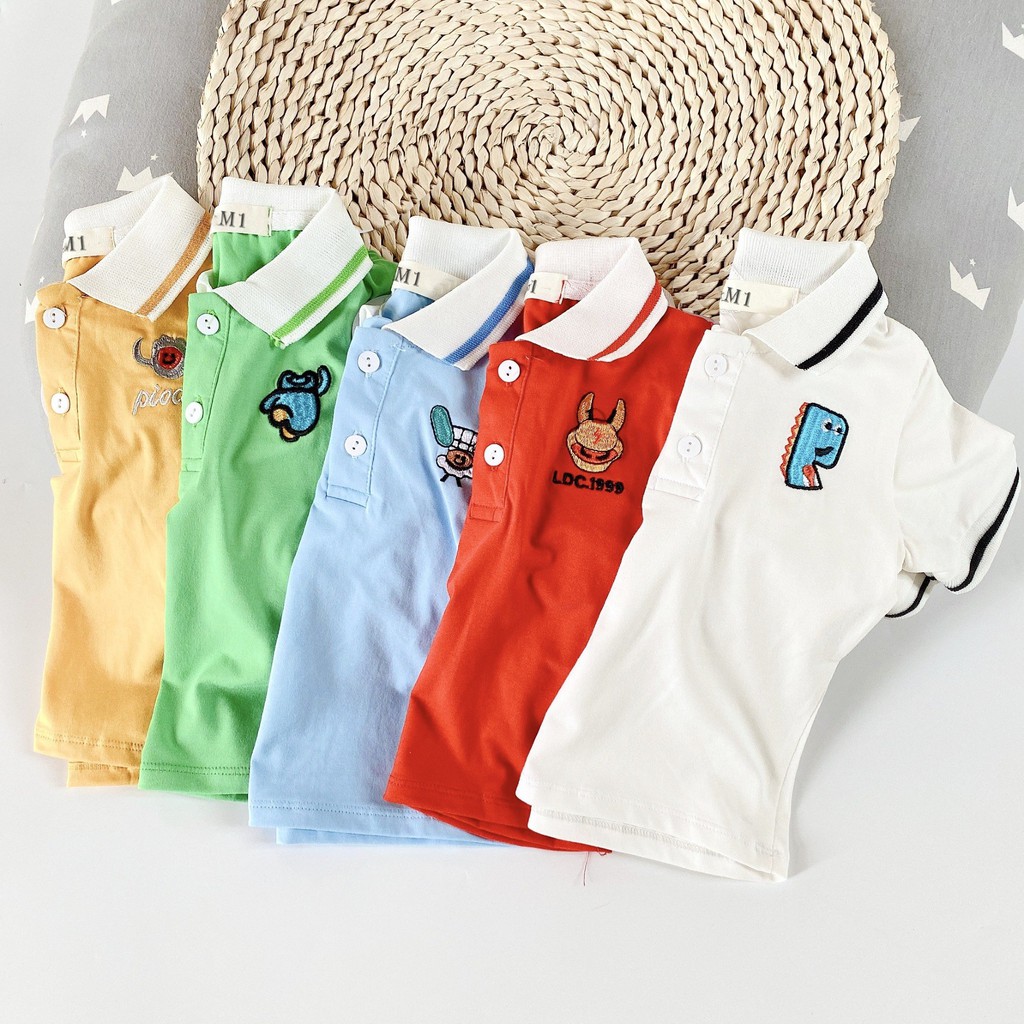 Áo Phông Cộc Tay Cổ Trụ Thêu Họa Tiết Động Vật Cho Bé