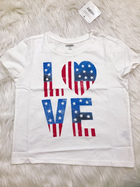Nhà cửa & Đời sống > Trang trí tiệc tùng > Phông nền, biểu ngữ || Áo phông trắng chữ Love cờ mỹ Gymboree size 5T_hàng chính hãng Anh