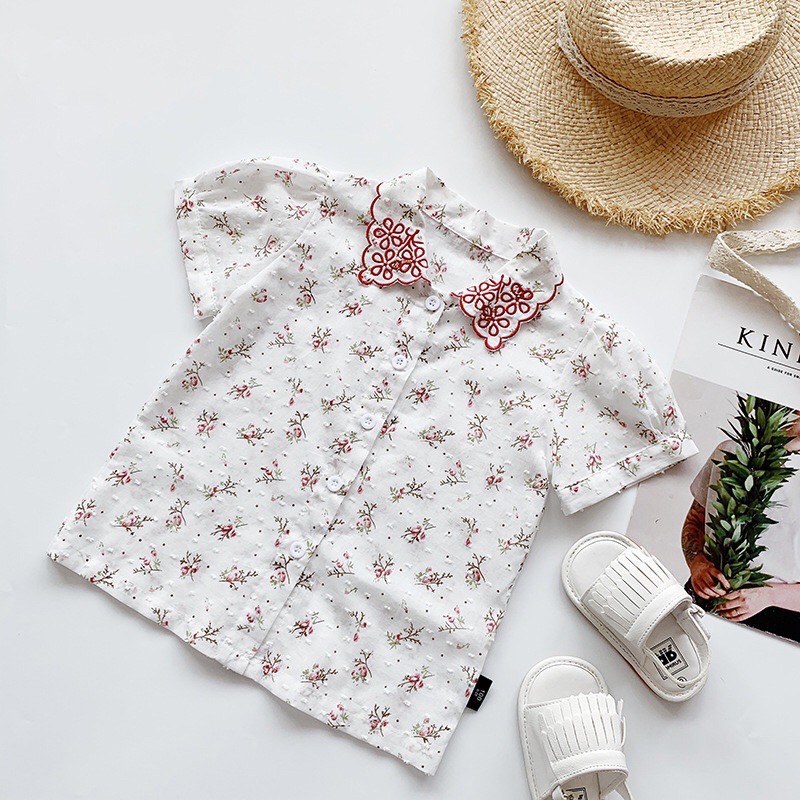 Thời Trang Trẻ Em > Bé gái | 5-14 tuổi > Áo || Áo sơ mi thêu hoa sang chảnh dễ thương