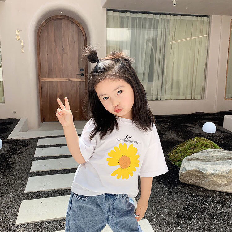 Giới thiệu Áo sơ mi trẻ em mùa hè mới hàn quốc hoa cúc quần áo trẻ em thư giãn bông cô gái tay áo ngắn PAPAYA