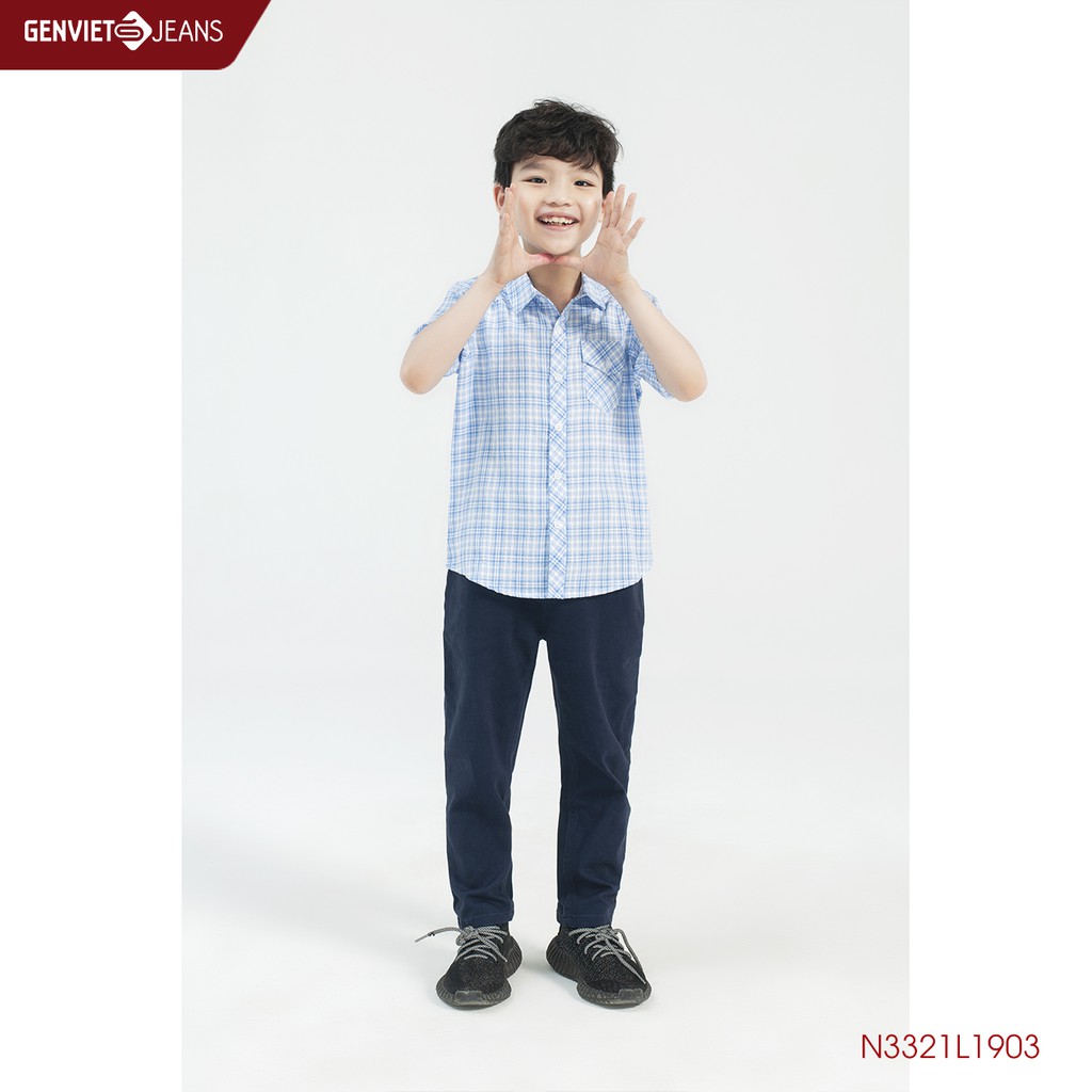 Giới thiệu Áo Sơmi Cộc Tay Kẻ Caro Kid Túi Hộp N3321L1903 GENVIET KID