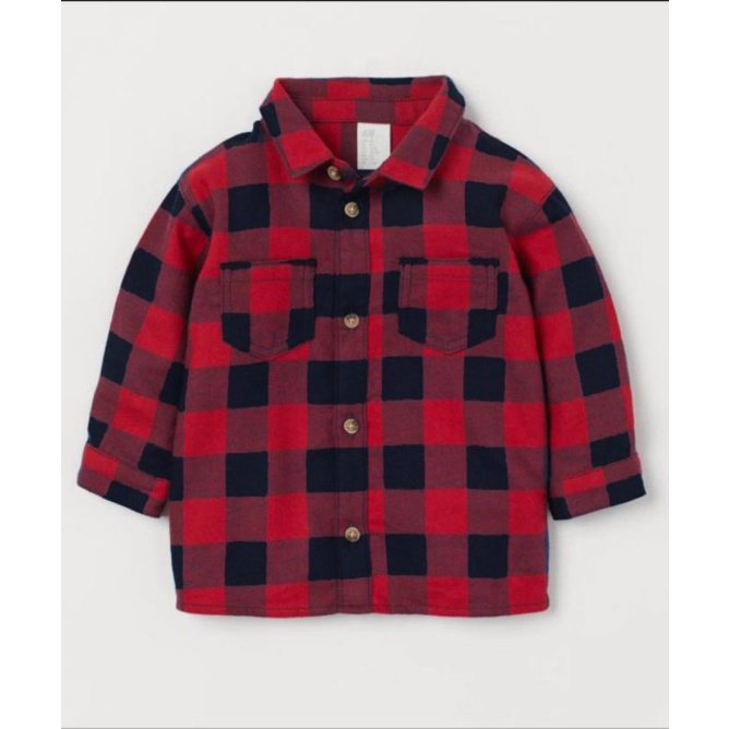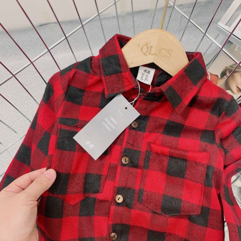 Thời trang trẻ em & trẻ sơ sinh > Quần áo trẻ em > Áo || Áo somi HM kẻ đỏ cho bé trai chất thô đũi mềm thâm hút