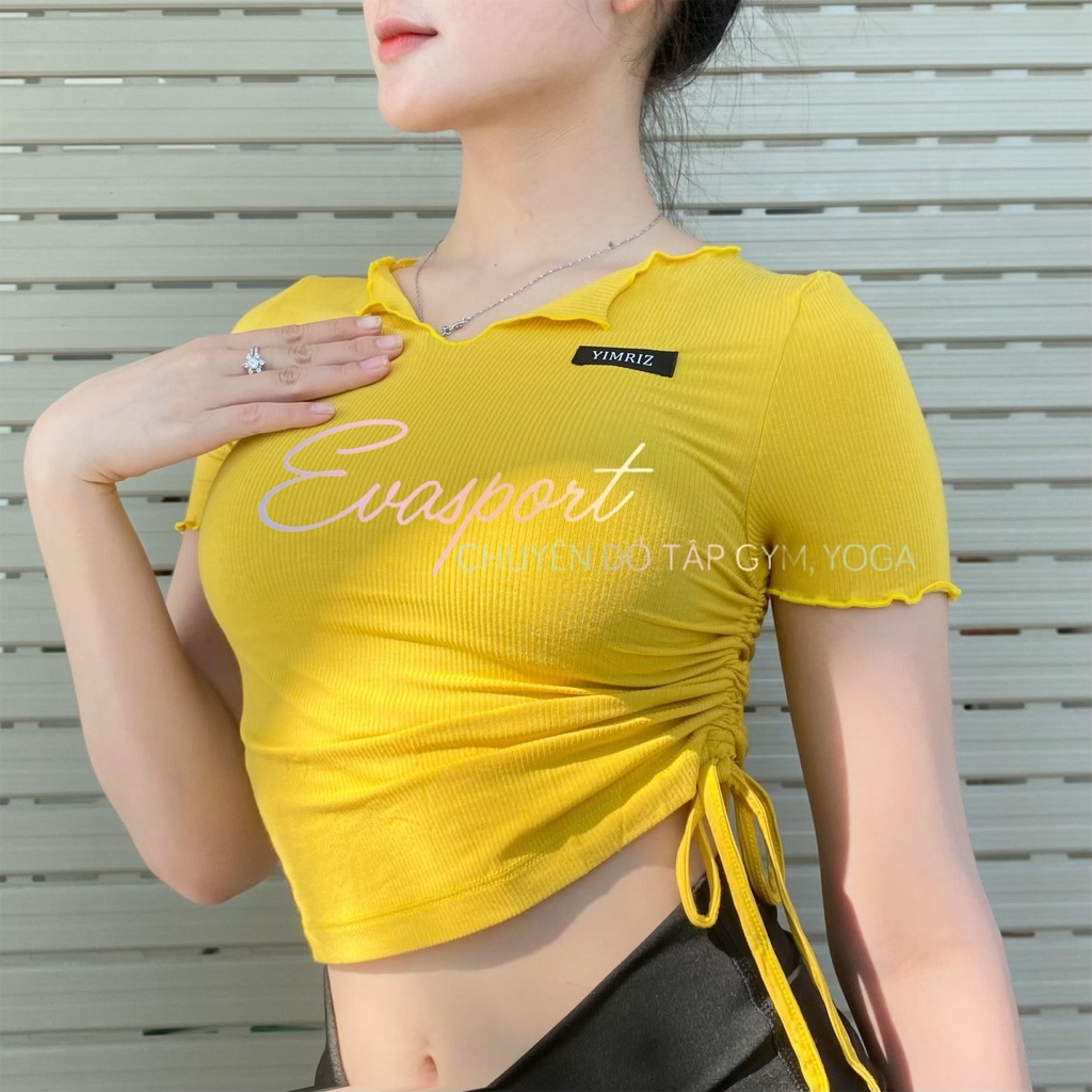 Áo tập gym yoga chạy bộ zumba nữ YIMRIZ dây rút vải len gân tăm bó sát cơ thể EvaSport
