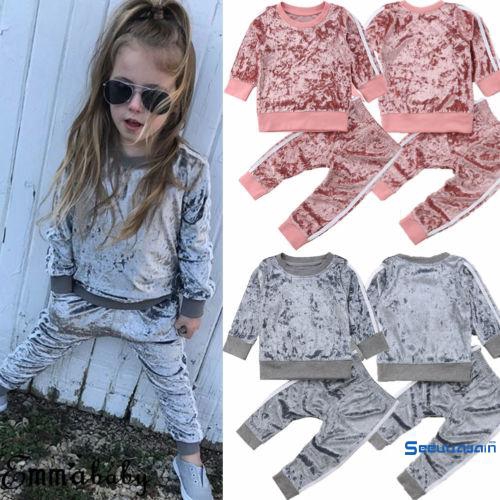 2Pcs Fashion Kids Baby Girls Boys Velvet Casual Outfits !!! High quality and Brand new 100% Main Color: As The Picture Show New in Fashion Material: Velvet Attention plz: If your kid is pumple, we recomend choosing a larger size, thanks. Please kindly refer to your kids actual height and the size chart before buying/bidding. Thanks. Package included: 1x Tops Sweatshirt &1x Pants Size Chart: Size Tops Bust*2 Pants Hip*2 Age 80 35 cm 27 cm 43 cm 30 cm 1-2 Years 90 37 cm 28.5 cm 48 cm 31.5 cm 2-3 Years 100 39 cm 30 cm 53 cm 33 cm 3-4 Years 110 41 cm 31.5 cm 58 cm 34.5 cm 4-5 Years 120 43 cm 33 cm 63 cm 36 cm 5-6 Years There is 2-3% difference according to manual measurement. please check the measurement chart carefully before you buy the item. 1 inch = 2.54 cm Please note that slight color difference should be acceptable due to the light and screen.