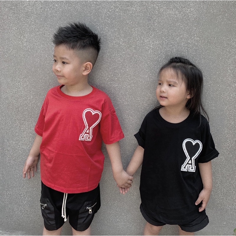 Thời trang trẻ em & trẻ sơ sinh > Quần áo trẻ em > Áo || Áo thun bé trai bé gái cotton cao cấp THE HOUSE KIDS hoạ tiết trái tim chữ A