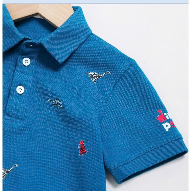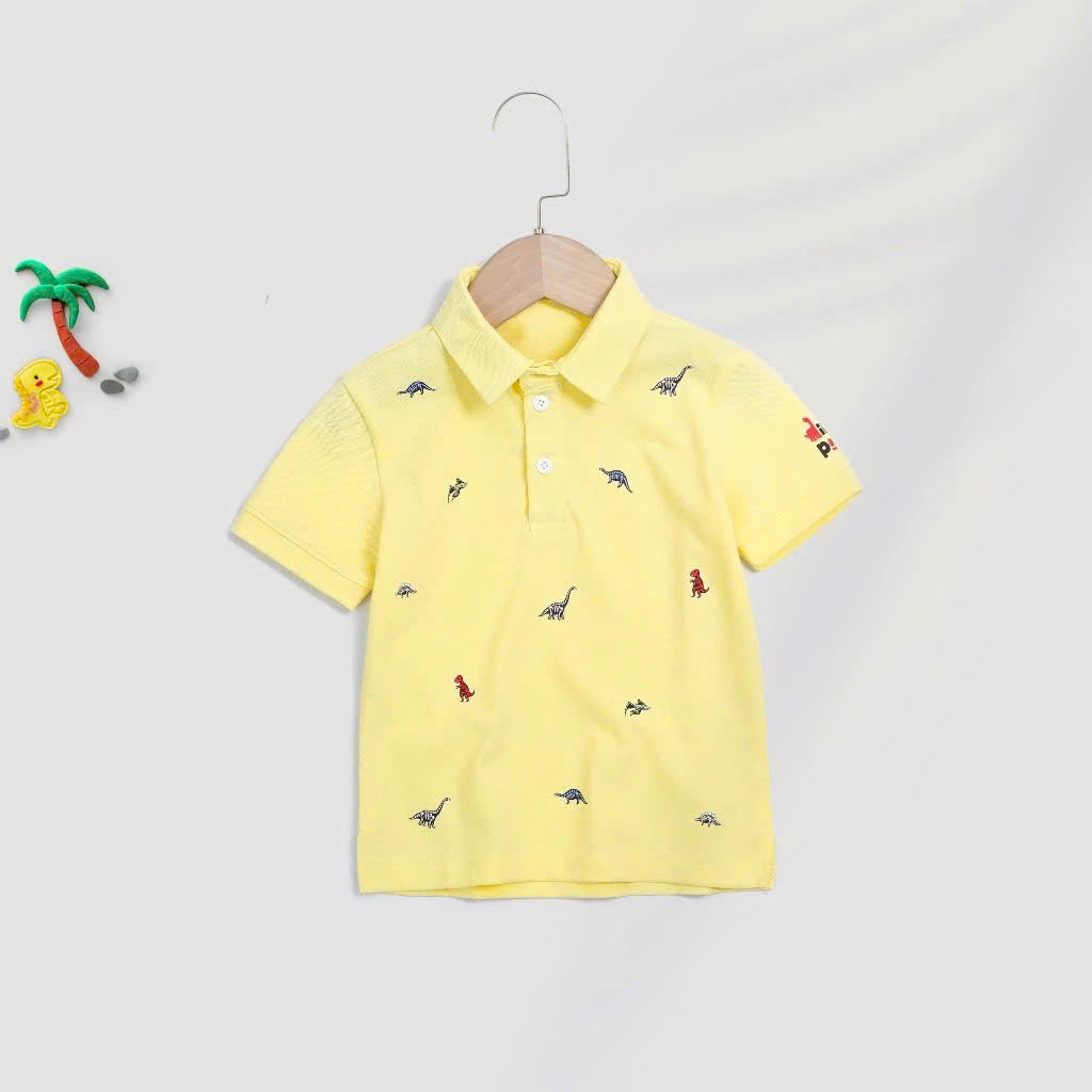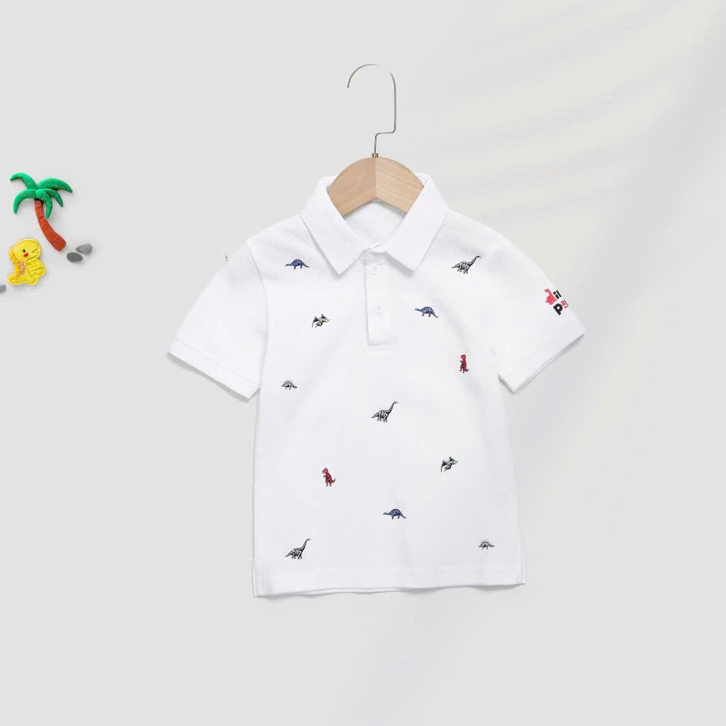 1. Tên sản phẩm : Áo Thun Bé Trai Cổ Bẻ In Hoạ Tiết Khủng Long 3D