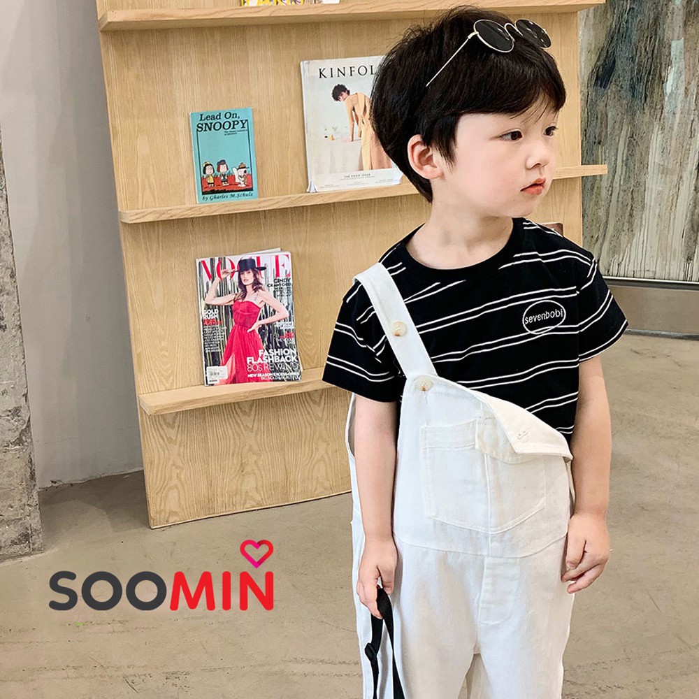 Áo thun bé trai Soomin , Áo Phông kẻ trắng chất cotton cho trẻ em từ 8 đến 22kg QATE H5