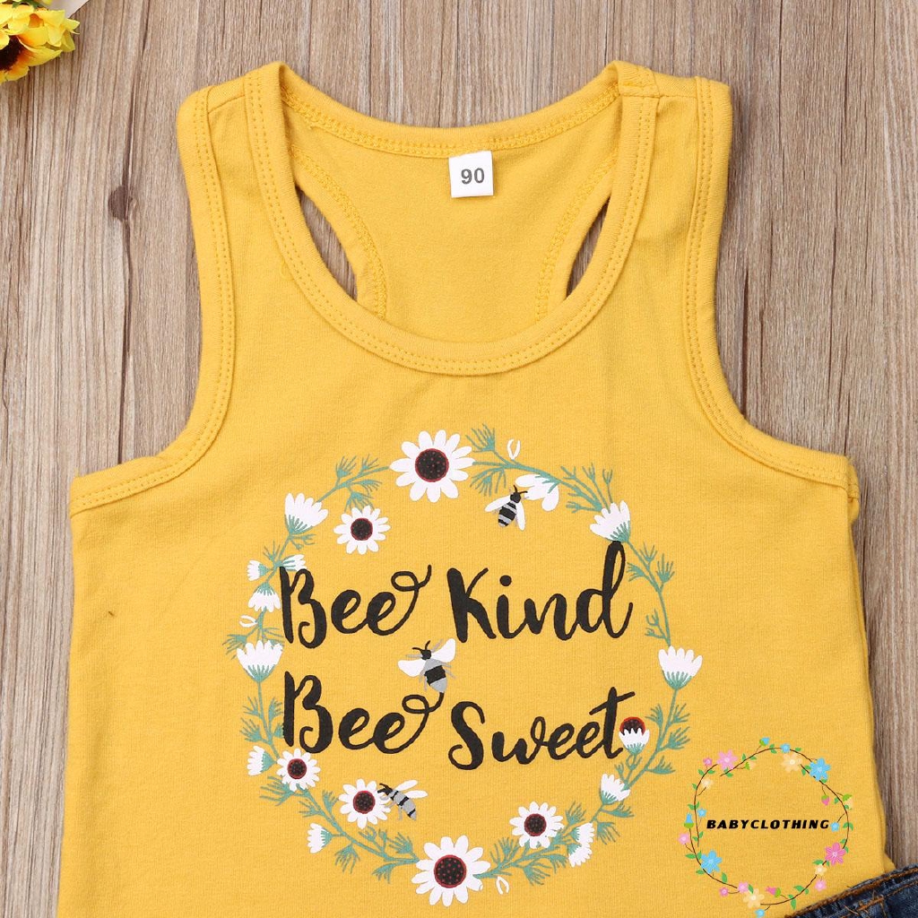 Thời Trang Trẻ Em > Bé gái | 3 tháng-4 tuổi > Áo || Áo thun không tay + quần short denim in hoa hướng dương dành cho bé gái 1-6 tuổi