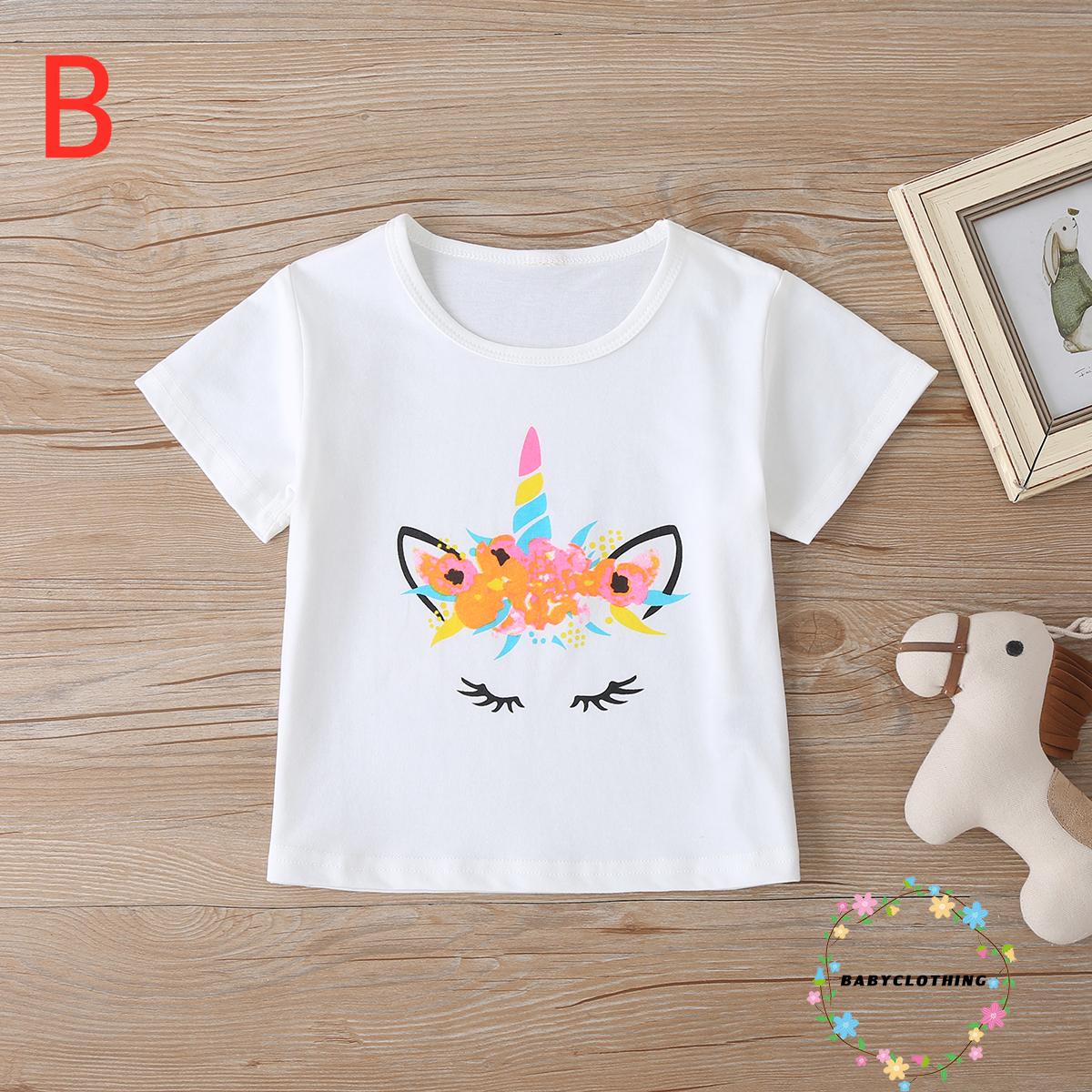 Thời Trang Trẻ Em > Bé gái | 5-14 tuổi > Áo || Áo Thun Ngắn Tay In Hình Kỳ Lân Cho Bé Gái