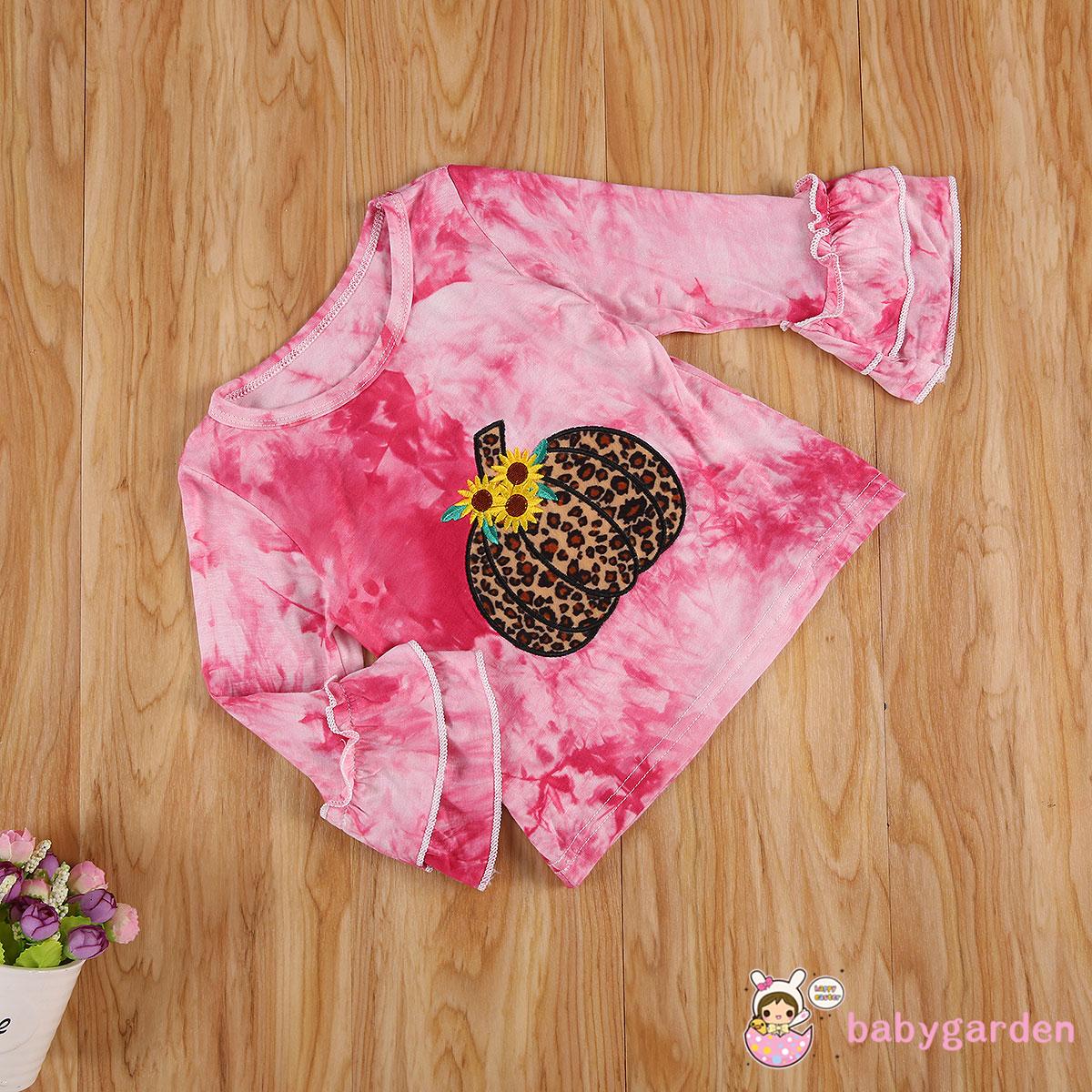Item specification: Suitable gender: baby girl Fabric: cotton Pattern: embroidery, tie-dye print Sleeve length: long sleeve Sleeve type: ruffle sleeve Neckline: round neck Color: purple, rose red, navy blue Size: 90, 100, 110, 120, 130