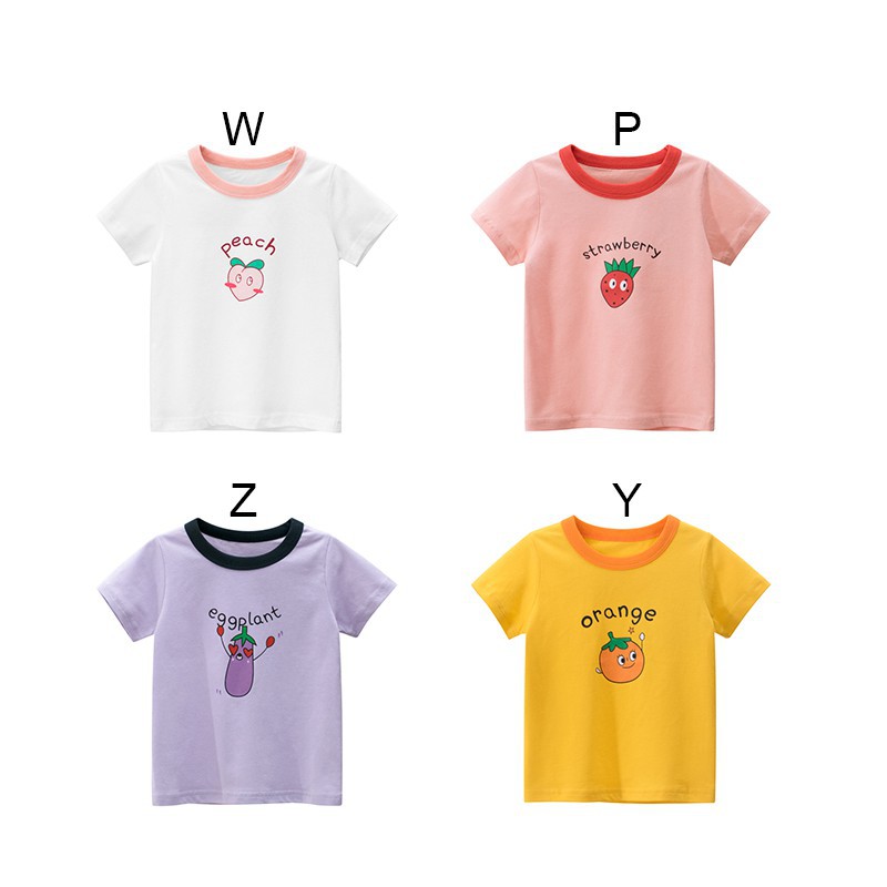 Description: 1. The use of high-quality pure cotton fabrics is comfortable, soft and breathable, not easy to pilling, and the baby is more comfortable to wear 2. The fruit cartoon design on the chest of the T-shirt is very hobby 3. Classic round neck design, simple and elegant 4. A variety of colors can be selected, both male and female babies can wear 5. Suitable for daily and travel wear