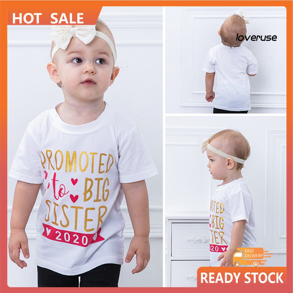 Specifications: This t-shirt features "Promoted To Big Sister 2020" letter print on the front. A great way to reveal that a new baby is on the way and for the big sister to show everyone how proud she is! Suitable for school, beach, holiday or just daily wear.
