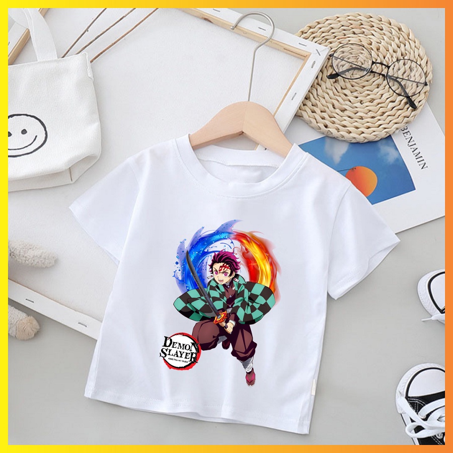 Giới thiệu Áo thun Thanh Gươm Diệt Quỷ Demon Slayer Kimetsu no Yaiba amine màu trắng cộc tay cho bé trai bé gái