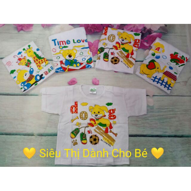 Áo trắng cài vai ngắn tay - dài tay in hình cho bé