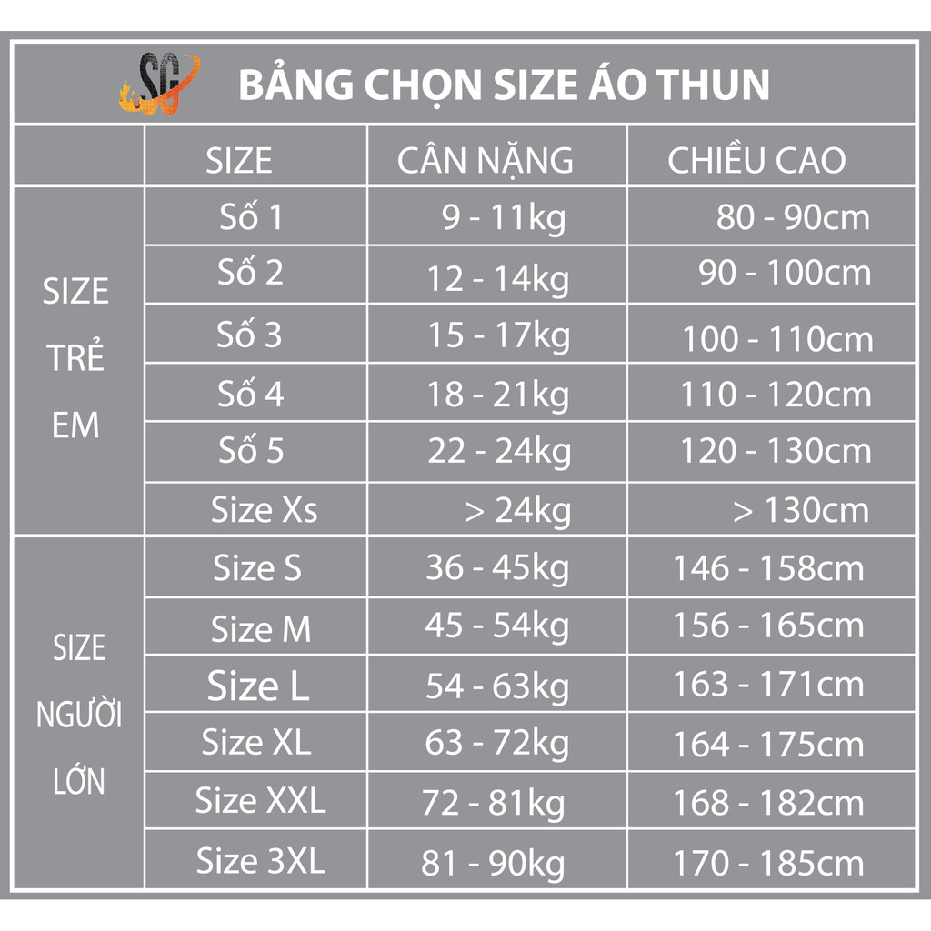 *LƯU Ý: - Áo thun form chung cho bé trai và bé gái - Bé lớn hơn 30kg sẽ chọn size người lớn (nhắn tin cho Shop để được hướng dẫn).