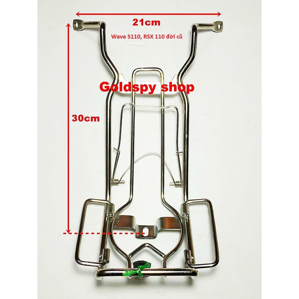 Baga Inox dày 10 ly gắn cho các dòng xe Wave S110, Wave RS 110, Wave RSX đời cũ Shop có hình ảnh thông số kích thước khoảng cách các lỗ gắn baga, - Các hoa văn kiểu dáng sẽ có thay đổi theo các mẫu mới hiện hành, việc gắn lắp phụ tùng, phụ kiện đồ chơi xe máy cần thợ có tay nghề và đầy đủ đồ nghề tháo lắp. Bạn nào không biết làm thì ra thuê thợ nhé. *** HÃY NHẤN VÀO THEO DÕI SHOP ĐỂ CẬP NHẬT NHIỀU SẢN PHẨM MỚI GIÁ TỐT - Goldspy shop chuyên kinh doanh và sản xuất phụ tùng trang trí xe máy - Các sản phẩm shop cung cấp với chất lượng tốt,chính hãng,giá cả cạnh tranh -Trường hợp khi nhận hàng bị vỡ,hỏng...do quá trình vận chuyển mong quý khách liên hệ với shop để đươc bảo hành 1 đổi 1 trong thời gian sớm nhất Khách sỉ liên hệ:0968.96.57.96 -Khi nhận được sản phẩm mua và sử dụng ưng ý xin quý khách bình chọn 5 sao động viên shop nhé -Thời gian nhận hàng: Các tỉnh miền Bắc : từ 1 - 3 ngày ( tính kể từ ngày giao hàng) Các tỉnh miền Trung : từ 2 – 4 ngày ( tính kể từ ngày giao hàng) Các tỉnh miền Nam : từ 3 – 7 ngày ( tính kể từ ngày giao hàng) Liên hệ : 0968.96.57.96