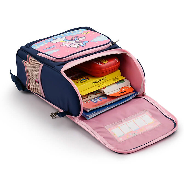 Balo được thiết kế kích thước vừa phải, phù hợp với bé từ lớp 1-4. Ngăn chính balo có thêm dây thun gàng, giúp giữ cho sách vở của bé được ngay ngắn, không xô lệch khi bé hoạt động hoặc chạy nhảy.