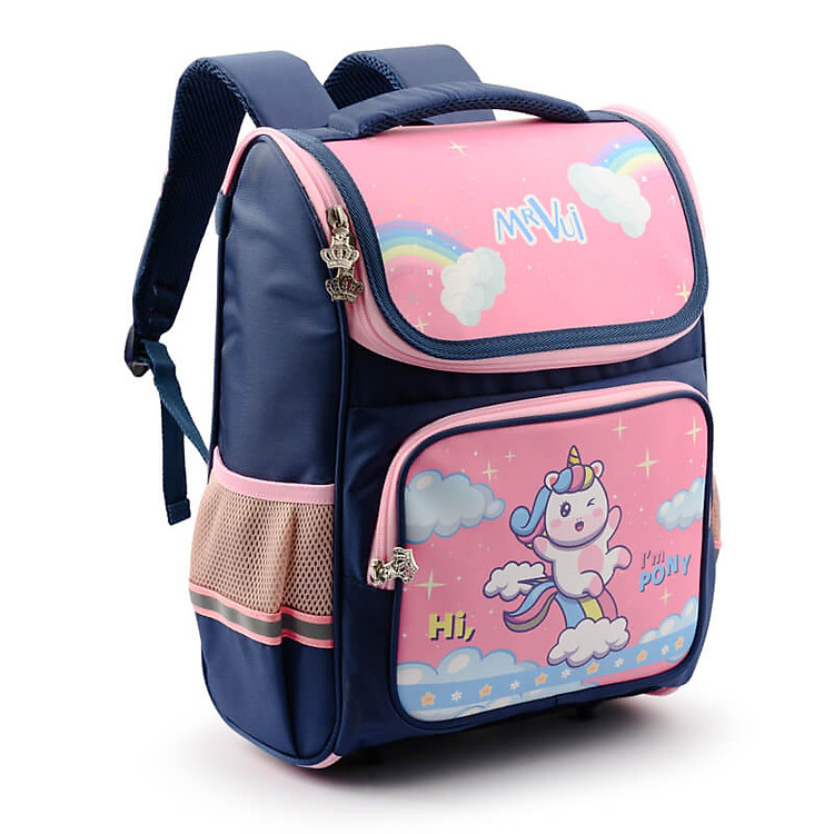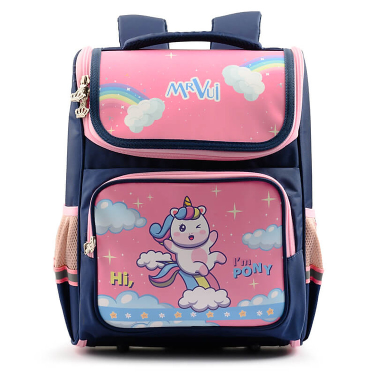 Được sử dụng chất liệu vải 900PVC với các ưu điểm nổi bật như hạn chế thấm nước, có độ bền theo thời gian, giữ được màu sắc tốt. Bên trong balo Mr Vui sử dụng vải Poly Oxford 100% chống nước, chống bám mùi, bảo vệ tốt cho đồ dùng học tập của các bé.