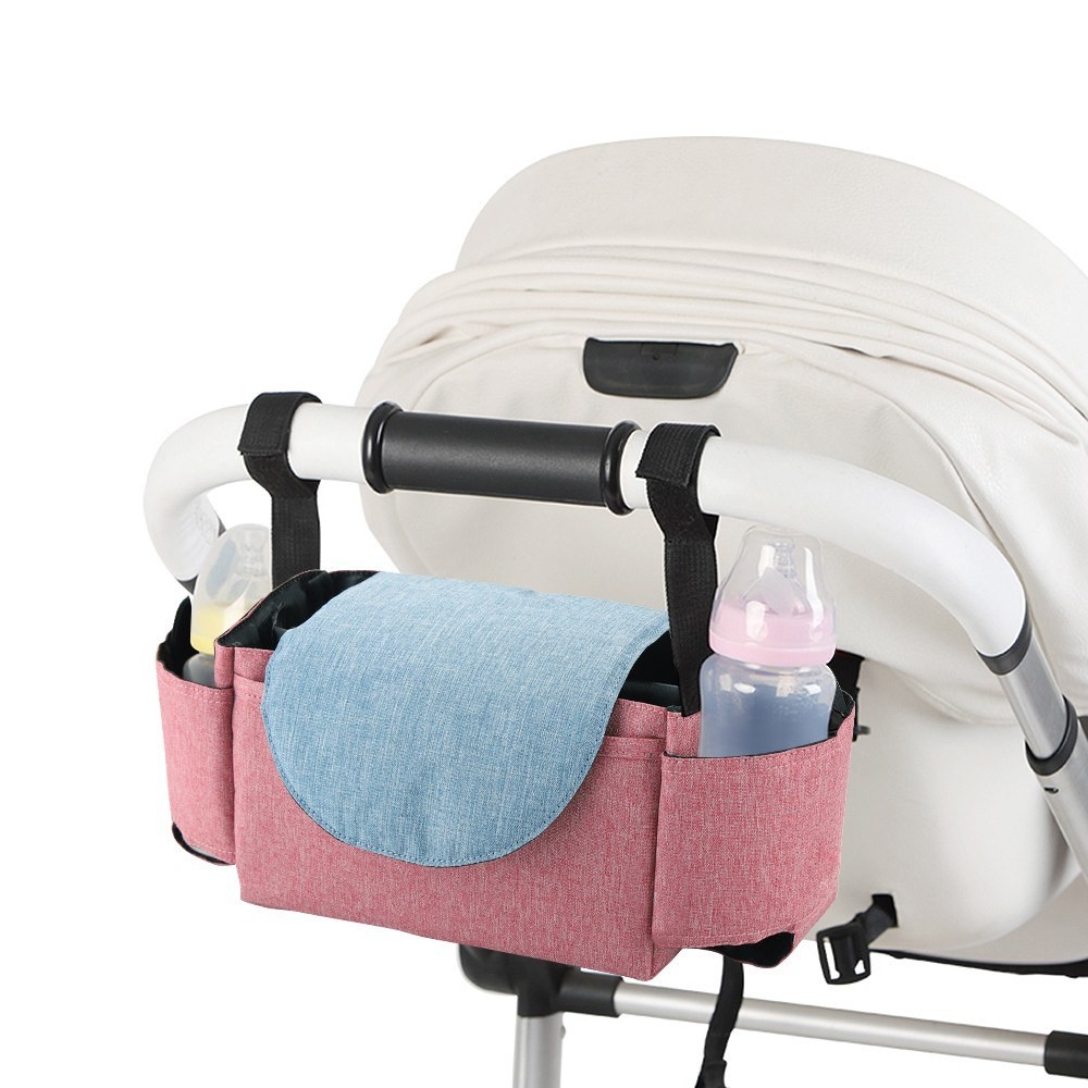 Features: Premium Quality: made of water-repellent 201D polyester cloth, dirt-proof and not easy to tear or wear, durable to use. Spacious Capacity: 6 pockets, separate storage space, avoid clutter. 6 Separate Pockets: 2 pockets in the main compartment(with removable partition), large enough to hold many baby care essentials like diapers, clothes and wet tissue. 2 pockets in the side to hold milk bottles. As well as 2 pockets in front and back a to hold your personal belongings like keys, cellphones, etc. Smart Design: easy to storage, suitable for all strollers. Contrast Color Design: fashionable, simple and elegant, simple yet stylish appearance. Convenient to Carry: can be held in hand or hung on the baby cart.