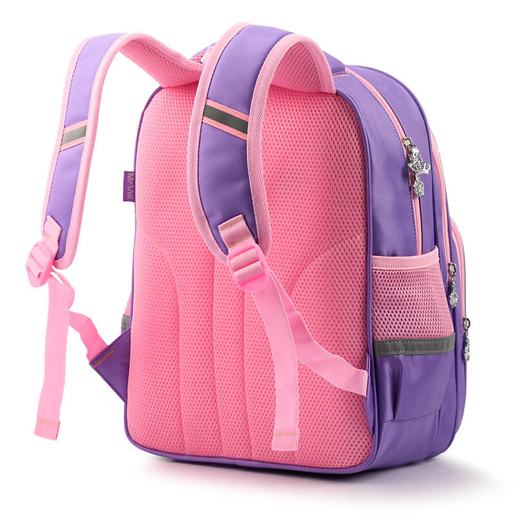 Quai mang balo phía sau có lớp đệm mút lưới giúp thoáng khí, không gây siết vai bé và tạo cảm giác êm vai khi bé phải sử dụng trong một thời gian dài. Dây đeo có thể điều chỉnh dài hay ngắn để thích hợp với vóc dáng của từng bé.
