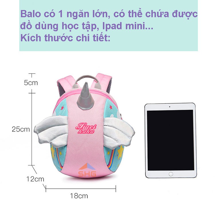 Giới thiệu BALO MẪU GIÁO KỲ LÂN 3D CÓ CÁNH RẤT DỂ THƯƠNG DÀNH CHO BÉ