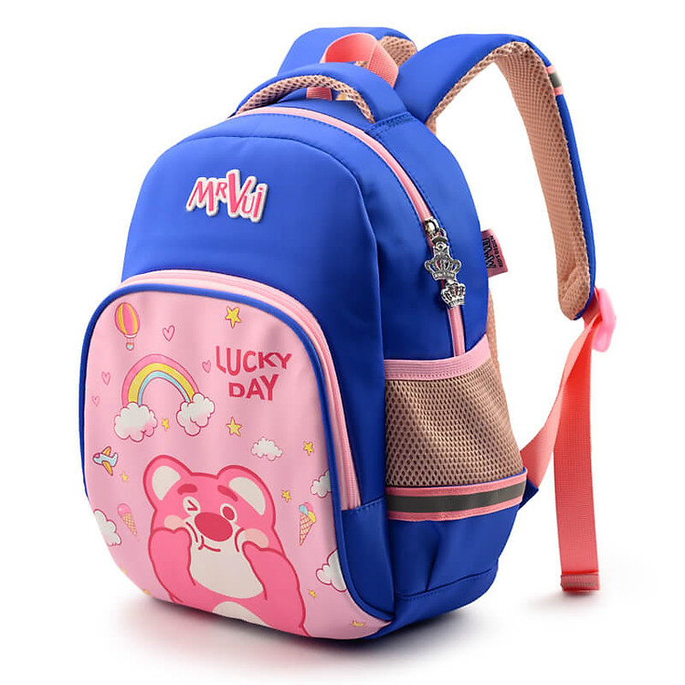 Balo Mr. Vui 934 được tỉ mỉ từ thiết kế đến từng chi tiết với màu sắc và hình ảnh kết hợp hài hòa với nhau. Phần quai đeo thiết kế cong ôm sát phần vai và ngực, có kèm đệm mút êm nên tránh tính trạng xô lệch cặp 2 bên, giảm trọng lực và chống cong vẹo cột sống cho bé.