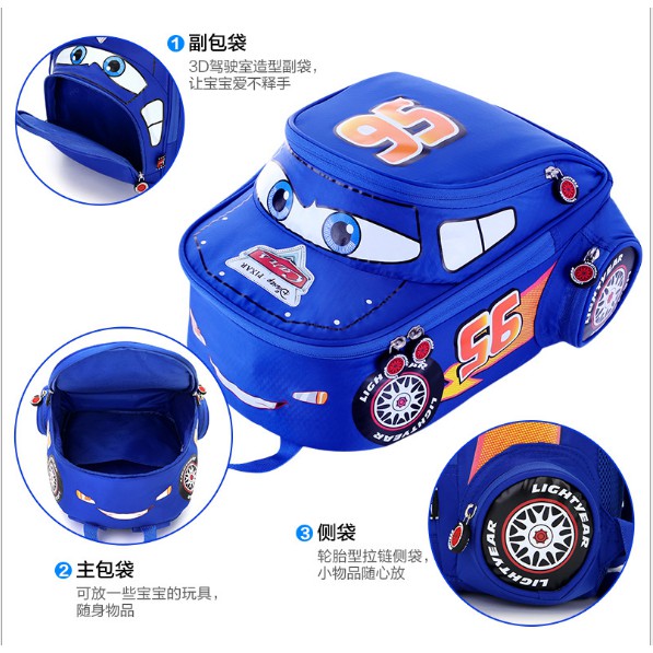 Ba lô bé trai MCqueen 95 cho bé mẫu giáo màu xanh được làm từ Chất liệu vải dù không thấm nước, siêu bền đẹp.