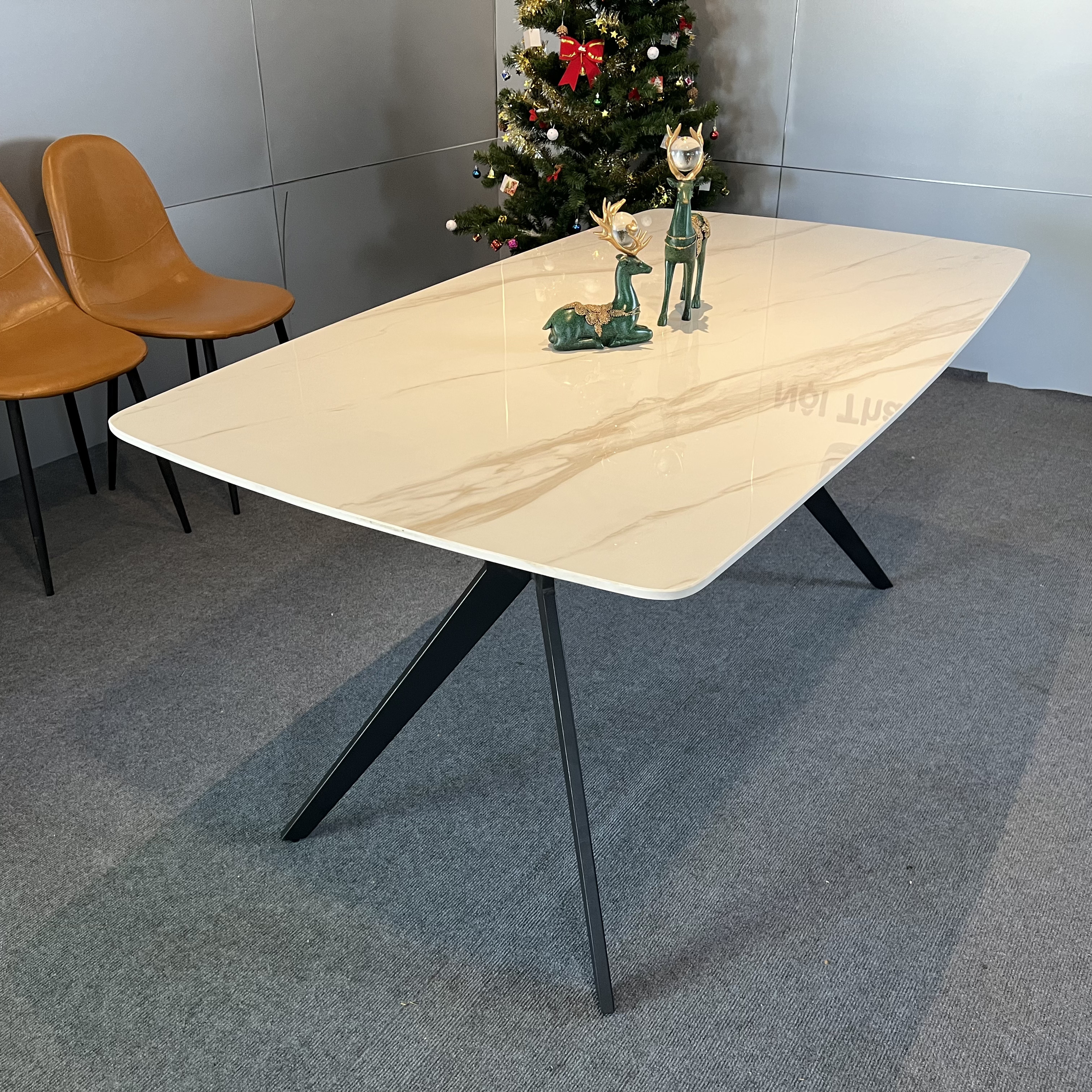 - Bàn ăn mặt đá phiến, chân sắt mạ vàng sơn tĩnh điện