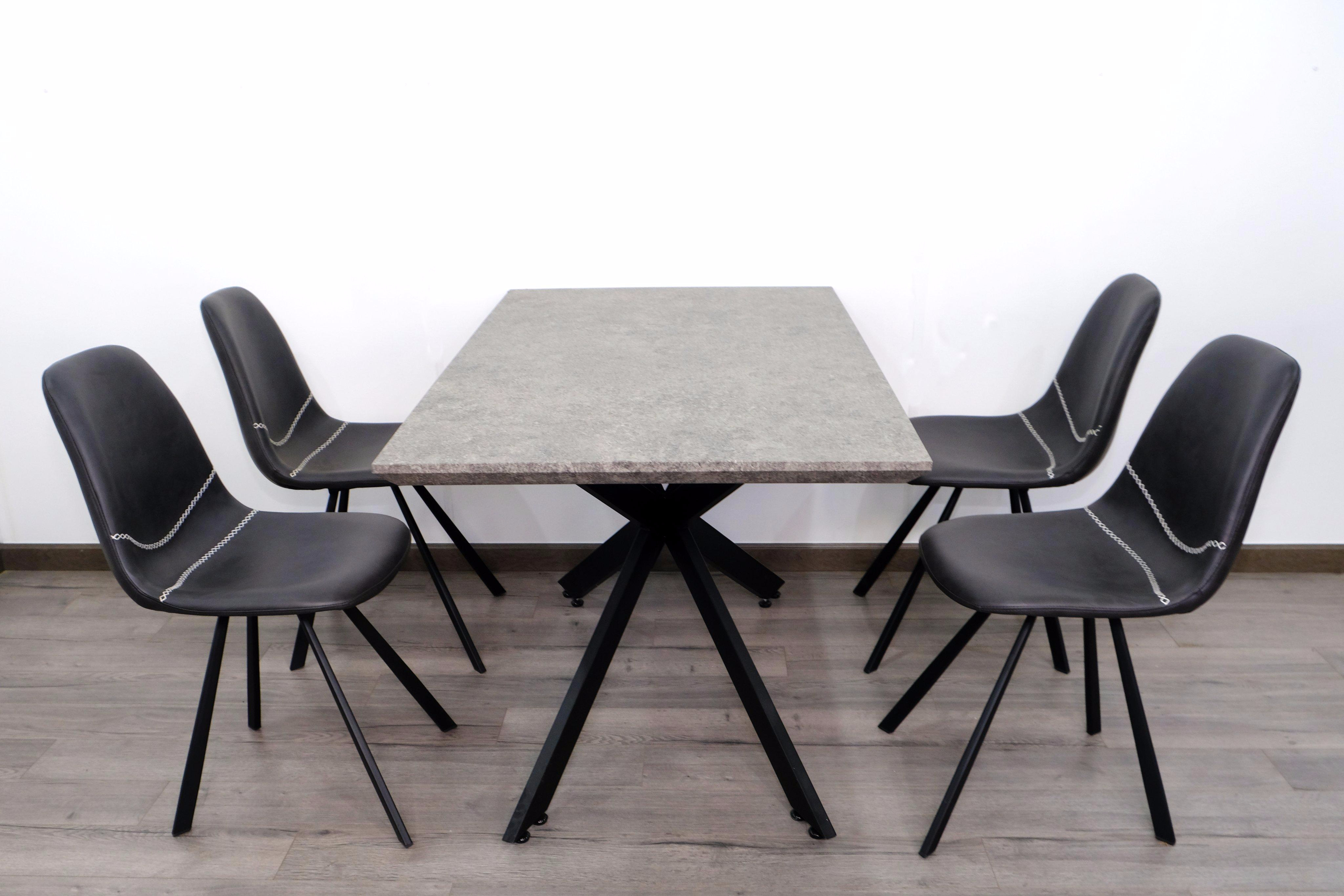 Bàn ăn mặt gỗ giả đá màu xám 1m4 chân sắt sơn tĩnh điện chữ X nhập khẩu TN 1217-14W đẹp cao cấp sang trọng kết hợp với ghế ăn STRIKE 2-F tại TpHCM Nội thất CAPTA