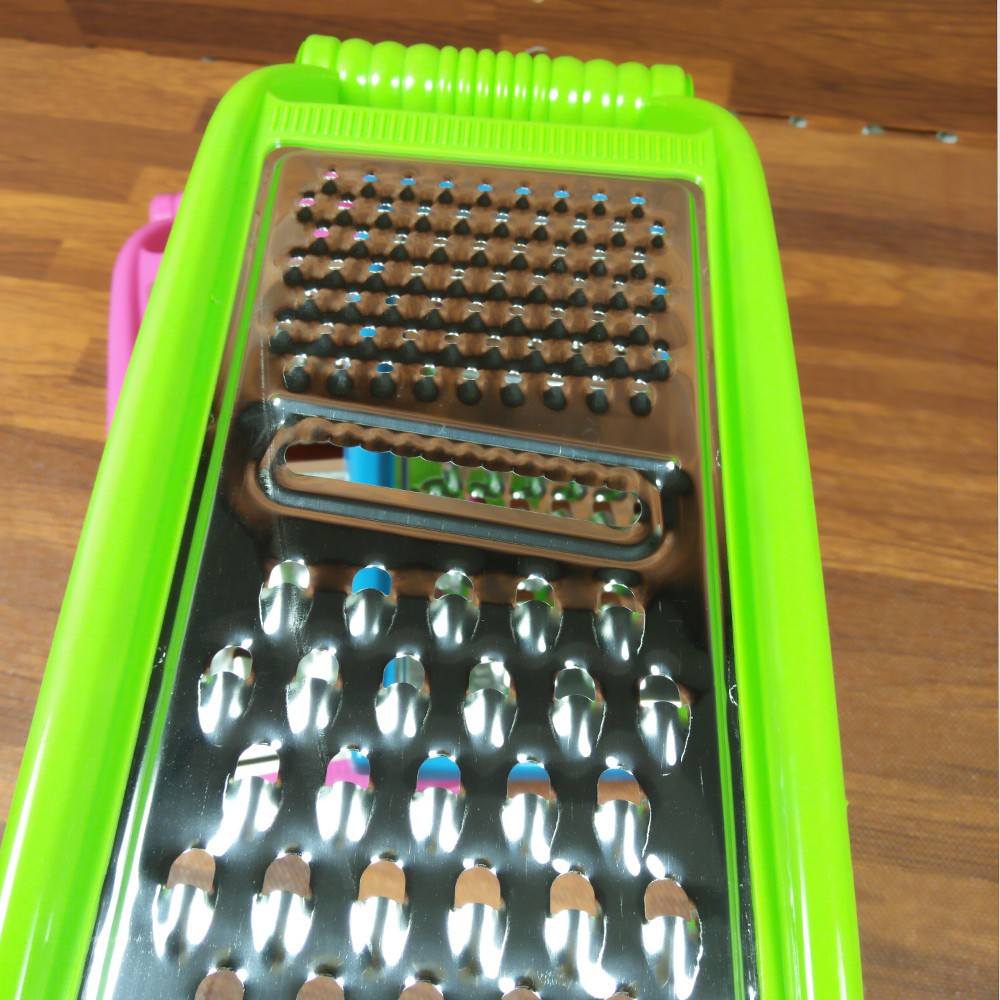 - Dụng cụ có 1 mặt bào sợi rau củ lớn, 1 mặt bào rau củ sợi nhỏ, 1 mặt bào rau củ dạng sóng