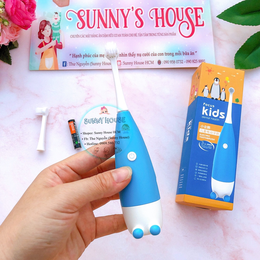 - Bàn chải điện KID là dòng sản phẩm cao cấp sử dụng Pin có thể tháo lắp và thay thế. Được thiết kế để trở thành bàn chải đánh răng tự động hoàn hảo thay thế cho bàn chải đánh răng bằng tay truyền thống: tốn thời gian, dễ tổn thương nướu, không sạch,... Công nghệ sóng siêu âm là công nghệ đột phá trong chăm sóc răng miệng kích thích tuần hoàn máu ở nướu, giúp làm sạch thức ăn, mảng bám nhanh và hiệu quả. Tốc độ rung: ~18.000 lần/phút, được đánh giá là phù hợp với cả các bé sơ sinh răng yếu. 2 loại đầu bàn chải giúp ba mẹ lựa chọn loại phù hợp với bé. Đầu lông siêu mềm mượt kết hợp áp lực nước có thể chạm đến được những răng nằm sâu bên trong và loại trừ những mảng bám ở những khu vực khó chạm đến được, cũng như đảm bảo chăm sóc răng nướu cho bé một cách an toàn nhất.