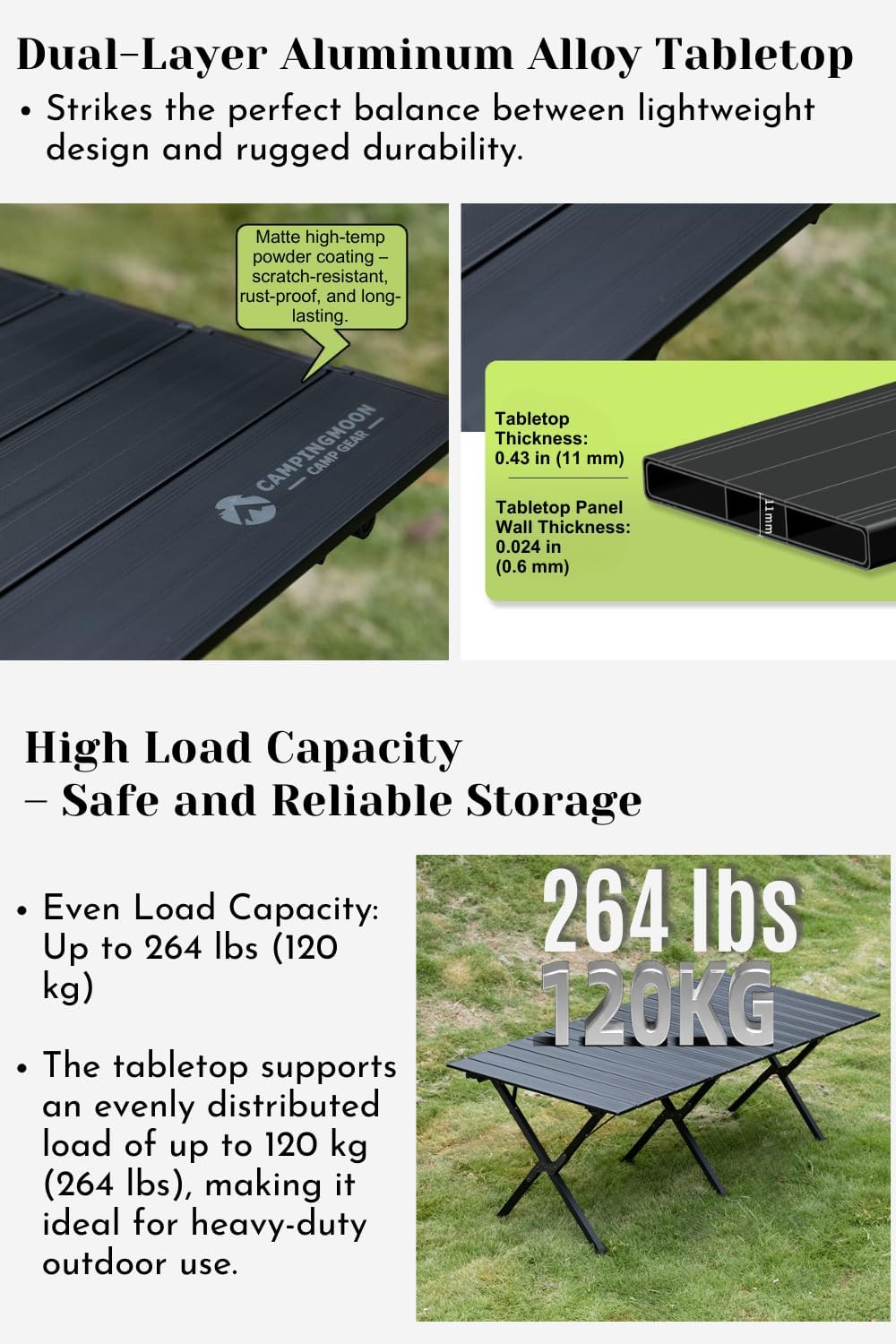 Bàn nhôm Campingmoon BKT-160 có thiết kế có thể gấp lại và vật liệu nhẹ giúp bạn dễ dàng mang chiếc bàn này đến bất cứ đâu. Có thể gập lại để cất giữ tiện lợi, túi đựng có quai xách giúp bạn dễ dàng mang đi.