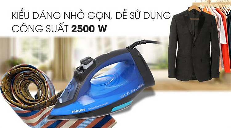 Bàn ủi công suất mạnh mẽ 2500W gia nhiệt tức thì, ủi hiệu quả mọi vết nhăn cứng đầu.
