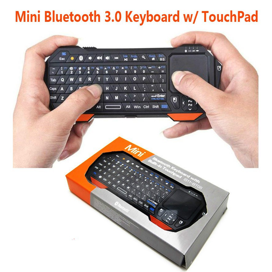 Backlit for operation in dark room. Real QWERTY full function mini keyboard. Real touchpad: ultra sensitive and multi-touch. 3 in 1 function: keyboard, mouse and touchpad. Short charge time: about 2 hours can fully charge the battery. Unique page up and page down key for convenient presentation. Built-in re-chargeable Lithium-ion battery which supports long time working. Bluetooth connection makes you enjoy wide range wireless control. The LED indicators are designed for signal of pairing status, battery indicator, caps lock status, etc.