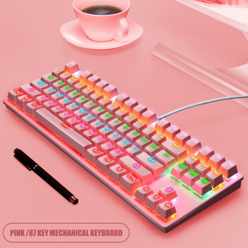 Specifications: Item Type: Keyboard Model: K550 Material: ABS Size: 360x130mm/14.1x5.11in Color: White, Pink, Blue, Black(Optional) Number of keys: 87 Keycap type: Two-color injection suspension keycap Light effect: colorful Interface: USB Mechanical shaft: green shaft Support system: for Win XP/7/8/10/Mac10.2 and above Quantity: 1 PC