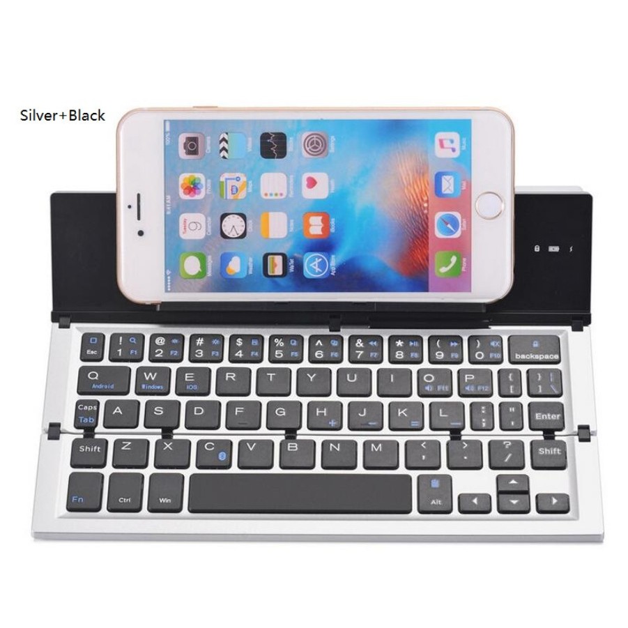 Máy tính & Laptop > Chuột, Bàn Phím > Bàn Phím Không Dây || Bàn phím gấp gọn Bluetooth 3.0 New Tri-fold aluminum (Silver Black) - Home and Garden