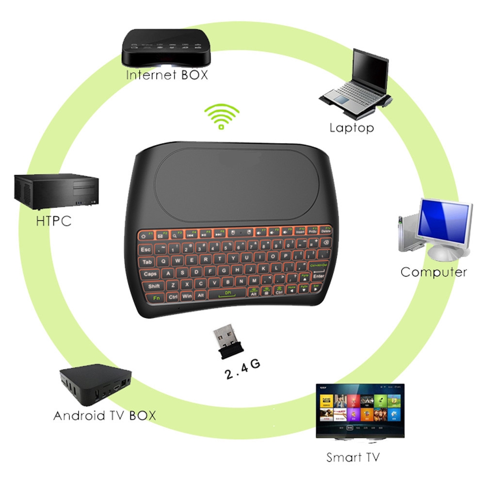 Đặc điểm: - Điều khiển từ xa đa phương tiện 3 trong 1 - Bàn phím không dây mini nhất có đa chức năng: Chuột cảm ứng + Chuột + Bàn phím + .RF 2.4G kết nối không dây.