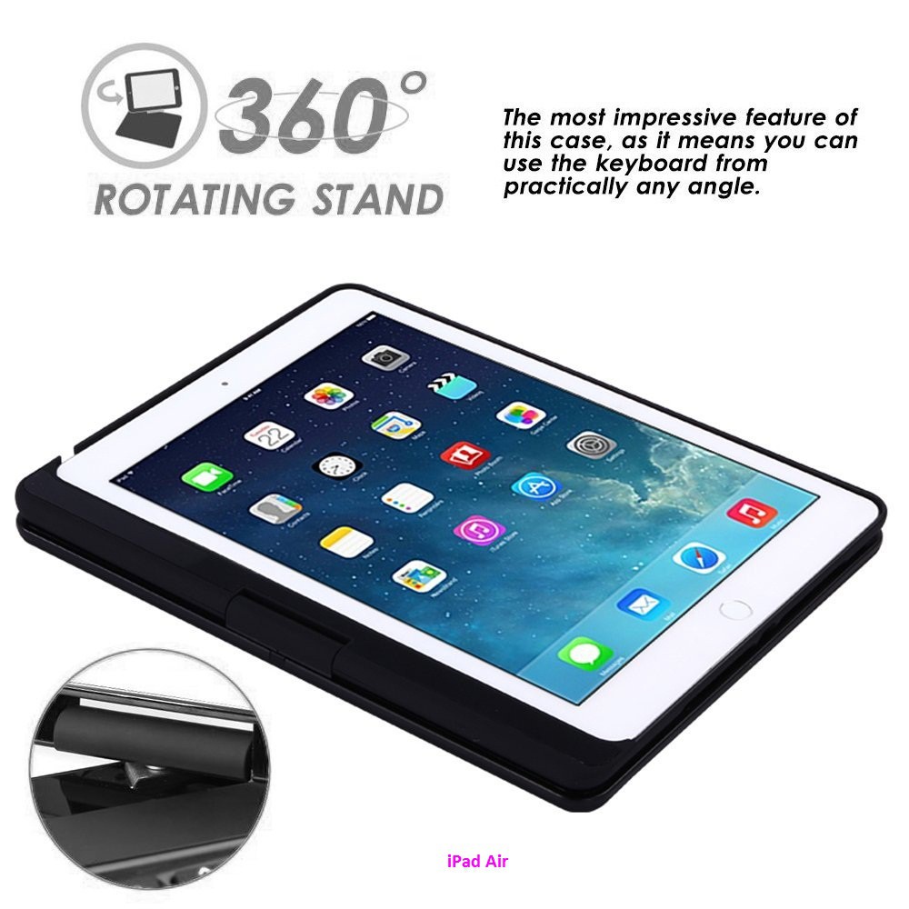 Bàn phím kiêm ốp lưng cho iPad Air xoay 360 độ (Đen).Sản phẩm hot năm 2018 Tặng tai nghe