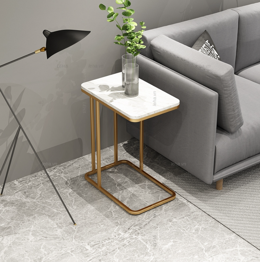 Kích thước: Rộng 30 Dài x Cao 55cm Chất liệu: Chân sắt sơn tĩnh điện Màu sắc: Vàng – đen Mặt bàn: Đá marble