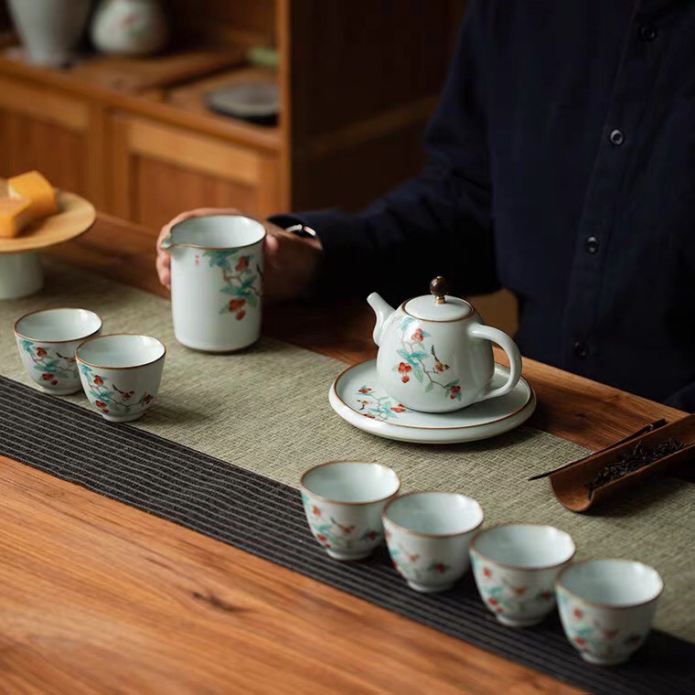 Giới thiệu Bộ bàn trà sơn thủy, ấm trà mạn bằng sứ vẽ tay thủ công đẹp mắt 7.139
