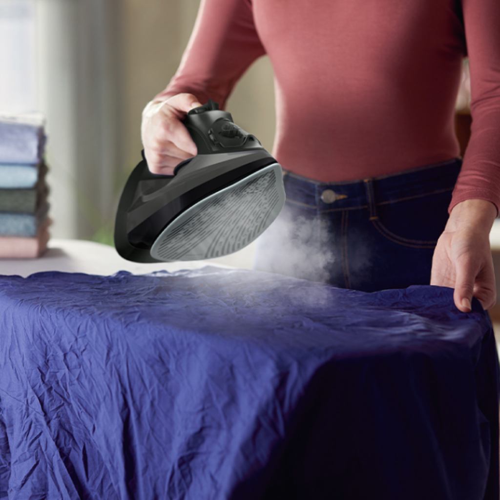 Mặt đế SteamGlide Plus chống dính có độ bền hơn gấp 4 lần, chống trầy xước giúp bàn ủi lướt êm trên bề mặt các loại vải và dễ dàng lau chùi.