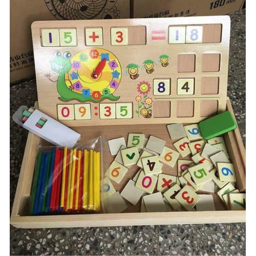Bảng ghép nam châm học số cho bé gồm khoảng nhiều con số, có kèm theo que tính để bé học đếm, bảng đen để cho bé viết phấn trắng.